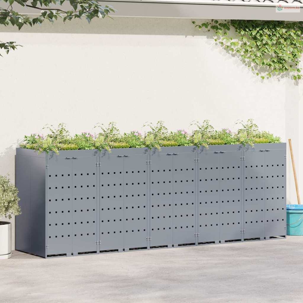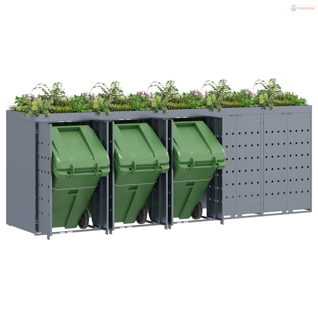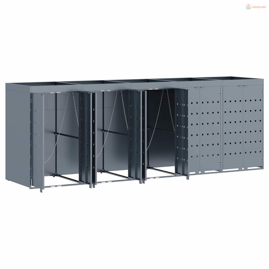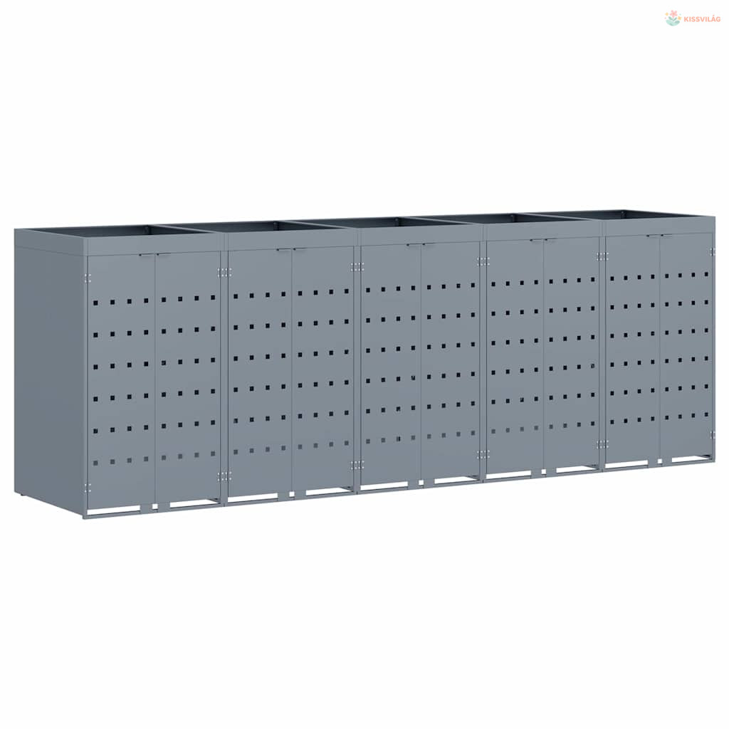 Gurulós kuka tároló 5 kukához Világosszürke Porfestett acél