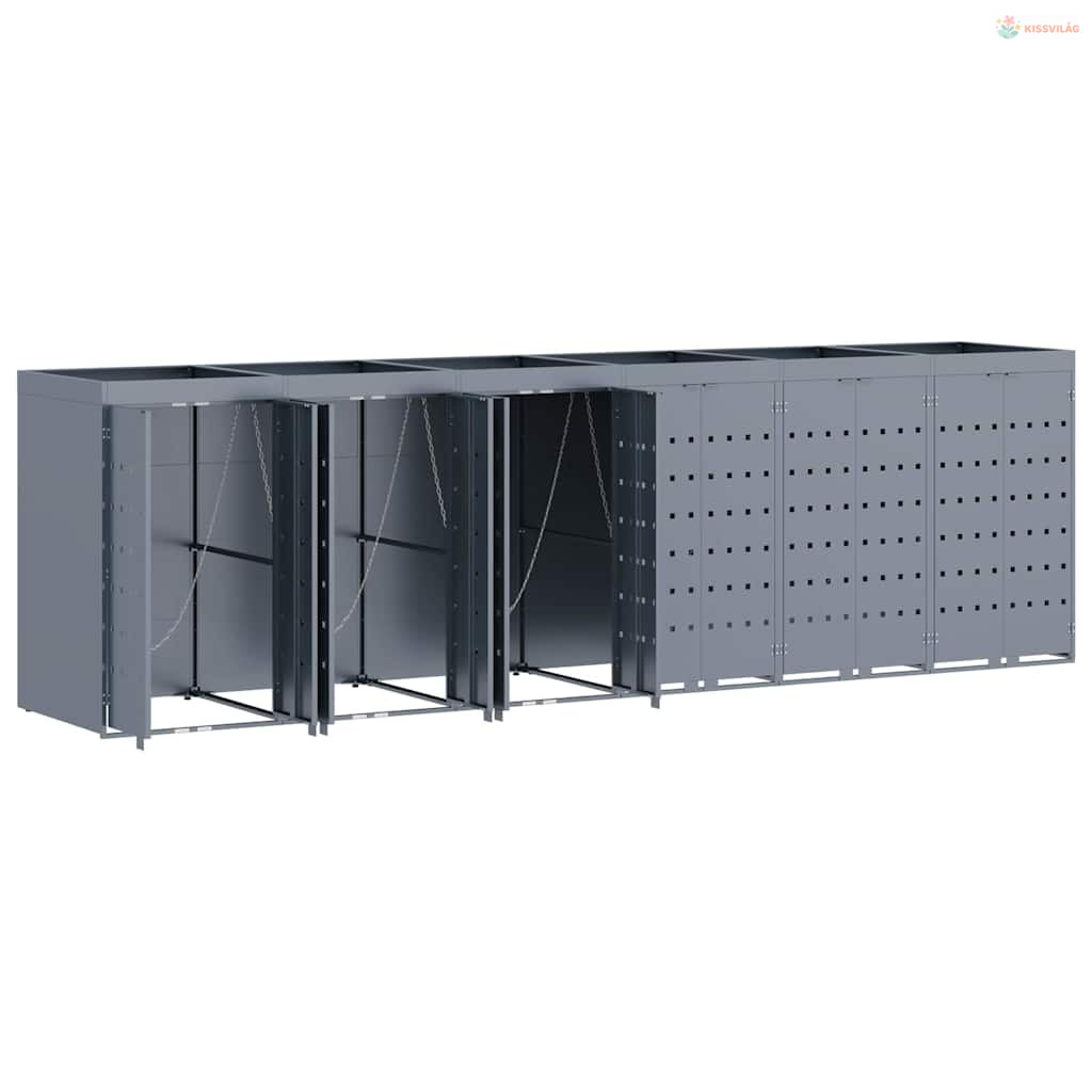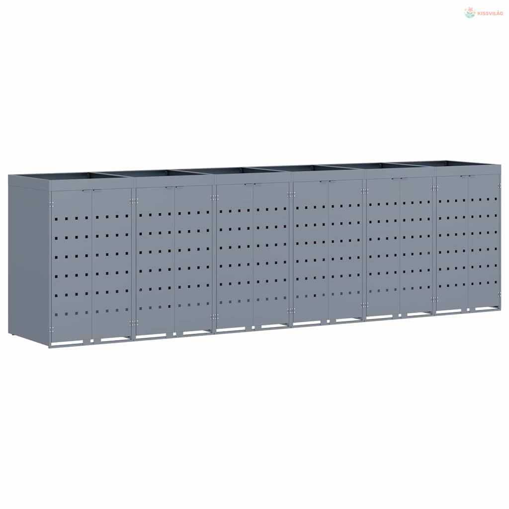 Gurulós kuka tároló 6 kukához Világosszürke Porfestett acél