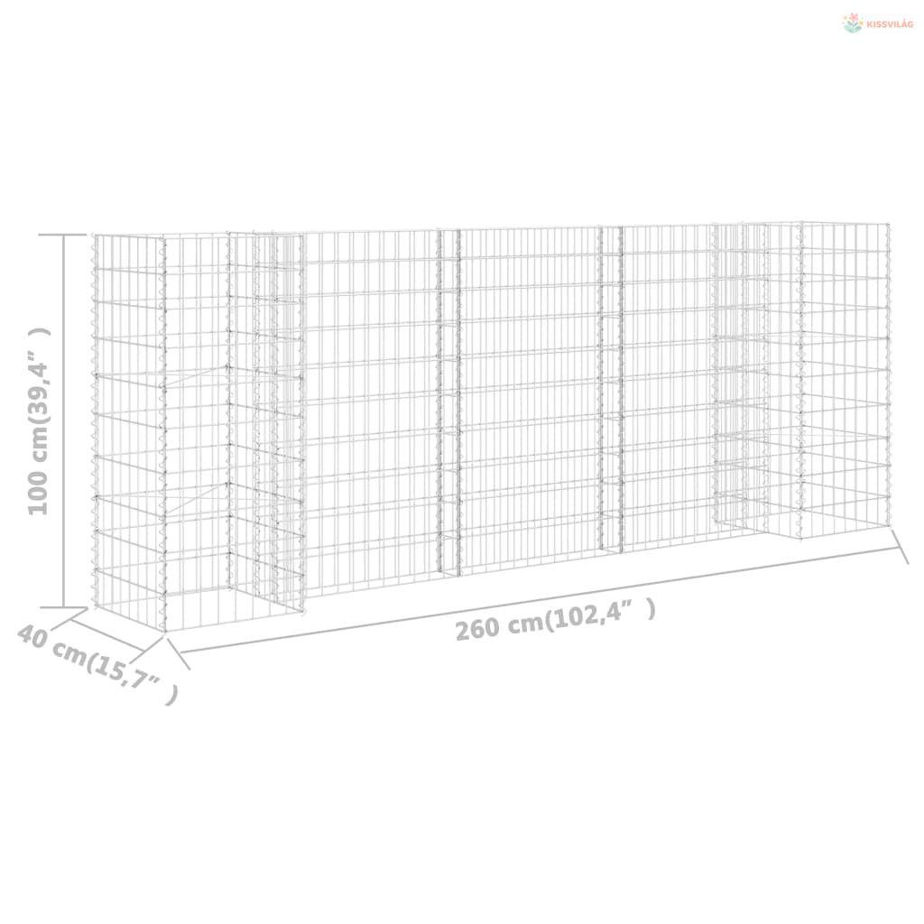 H alakú acéldrót virágtartó gabion 260 x 40 x 100 cm
