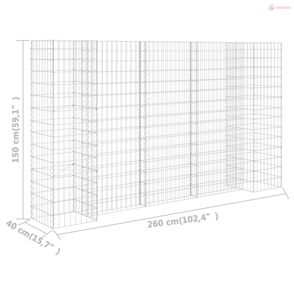H alakú acéldrót virágtartó gabion 260 x 40 x 150 cm