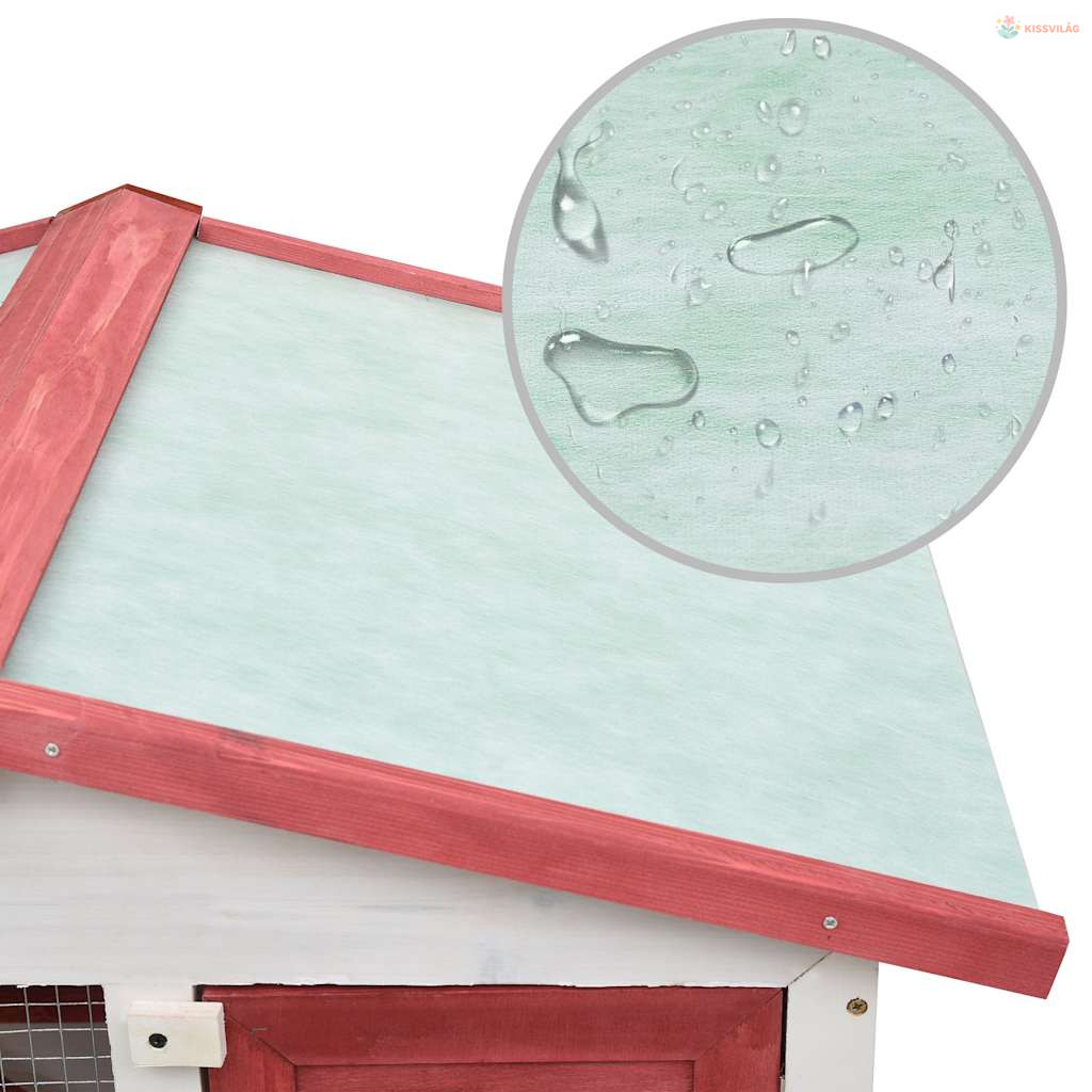 Háromajtós piros fa kültéri nyúlketrec