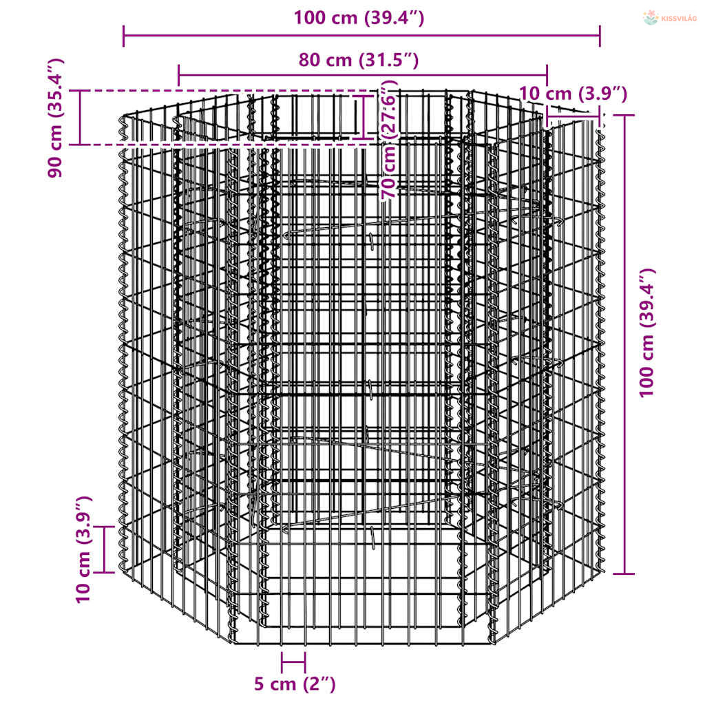 Hatszögletű gabion magaságyás 100 x 90 x 100 cm