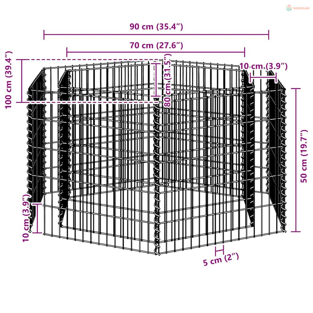Hatszögletű gabion magaságyás 100 x 90 x 50 cm