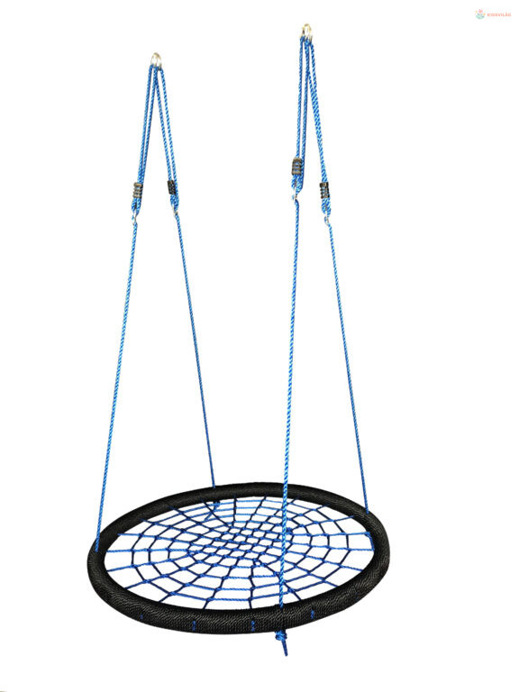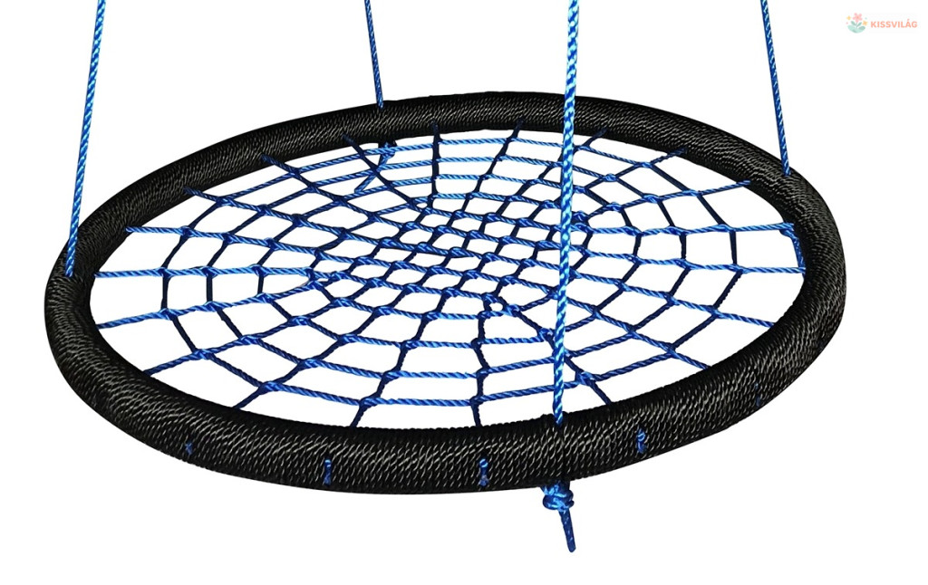Hintakör nagy teherbírású, 150 kg-ig, gyermekek és felnőttek számára, 4 kötél állítható hosszúsággal, kötéllel körbetekert fémkeret, fémgyűrűk a tartószerkezetre való felakasztáshoz.