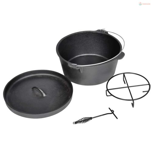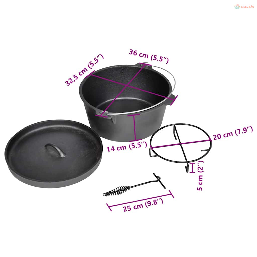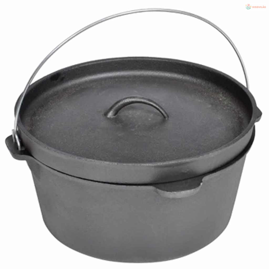A 9 QT holland sütő kapacitása 8.8 liter, belső átmérője 29.5 cm. Kezdők és profik számára egyaránt ideális modell. Húsok, pörköltek, sültek, stb elkészítésére alkalmas. A kis holland sütő kiegészül egy fekete hordtáskával, egy peremmel ellátott fedővel, egy fedő emelővel és egy állvánnyal. A fekete táska lehetővé teszi, hogy az edény a szállítás alatt is tiszta maradjon. Előre égetett. Alkalmas főzésre, sütésre. Kempingezéshez ideális.
