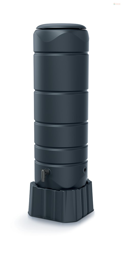 Esővíztartály, térfogat 110 l, kiváló minőségű PE anyagból, fagyálló, a tető ereszcsatornához csatlakoztatható, oldalsó csatlakozás a csap egyszerű felszereléséhez (tartozék), stílusos kialakítás.