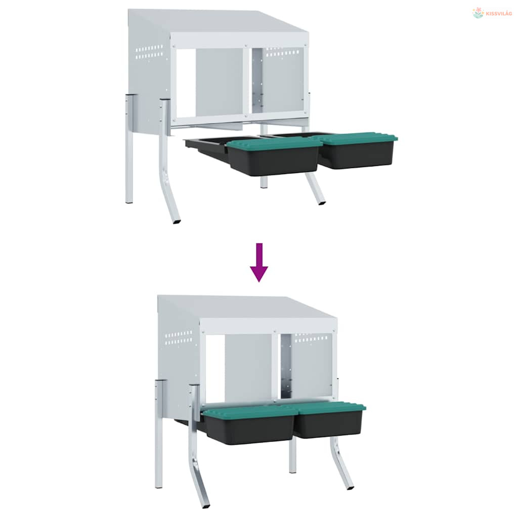 Horganyzott acél csirkefészkelőláda 2 rekesszel és lábakkal