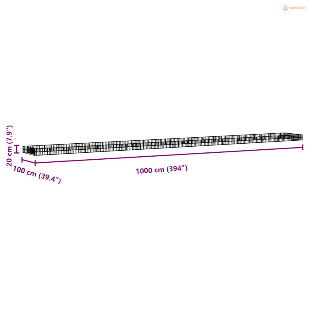 Horganyzott acél gabion magaságyás 1000 x 100 x 20 cm