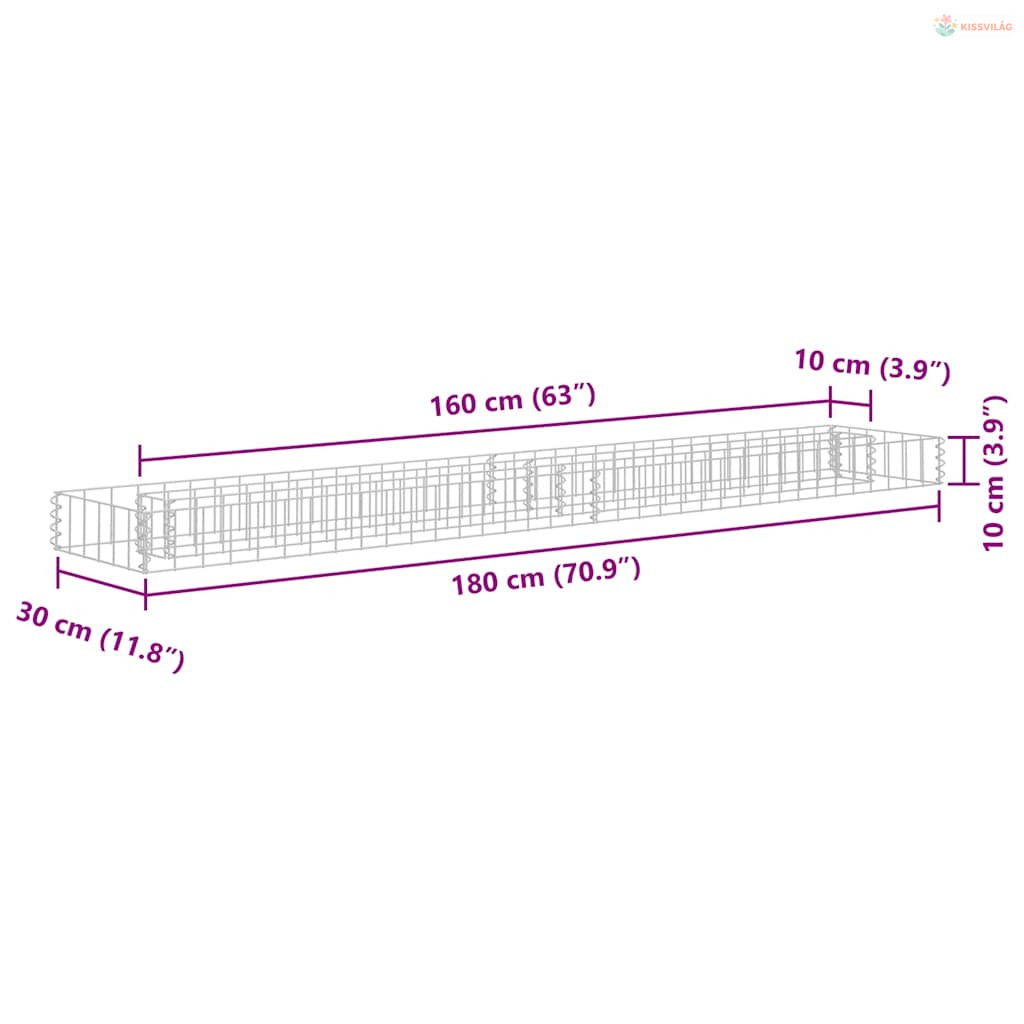 Horganyzott acél gabion magaságyás 180 x 30 x 10 cm