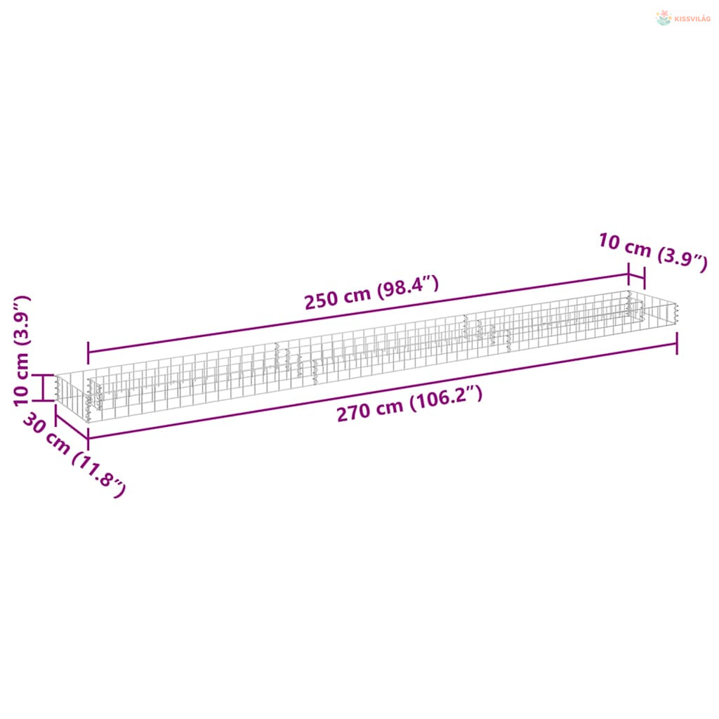 Horganyzott acél gabion magaságyás 270 x 30 x 10 cm