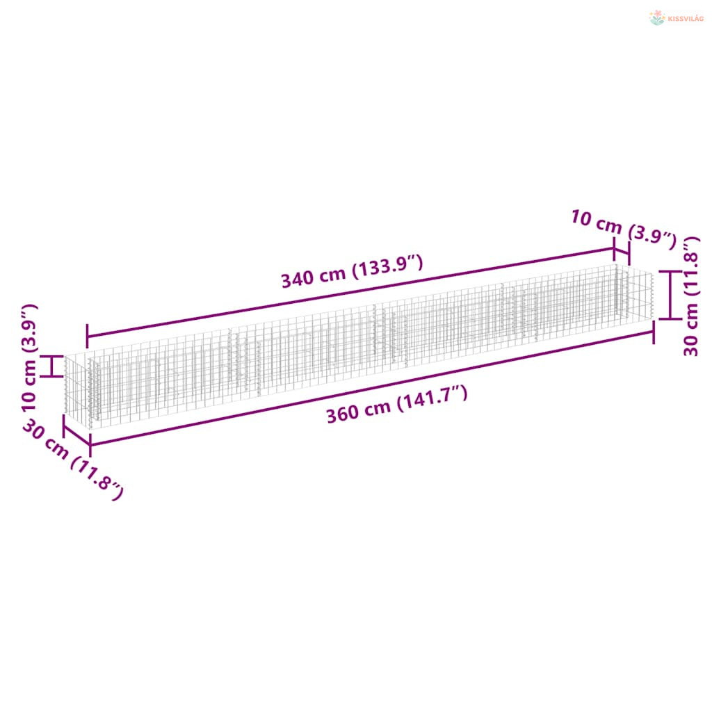 Horganyzott acél gabion magaságyás 360 x 30 x 30 cm