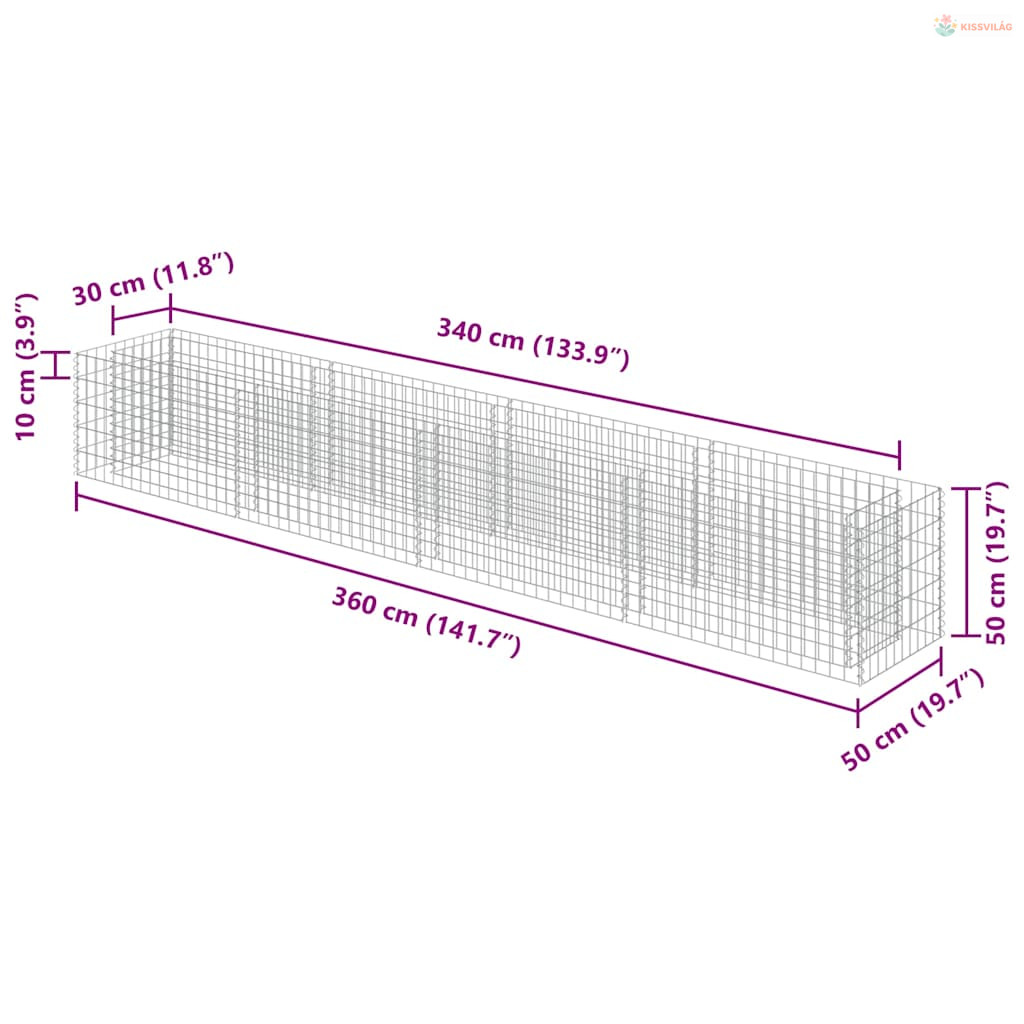 Horganyzott acél gabion magaságyás 360 x 50 x 50 cm
