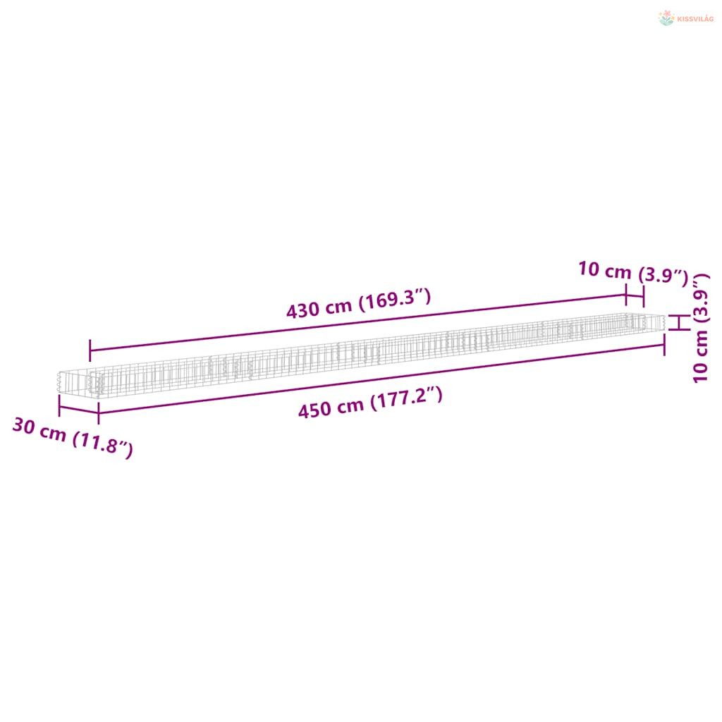 Horganyzott acél gabion magaságyás 450 x 30 x 10 cm