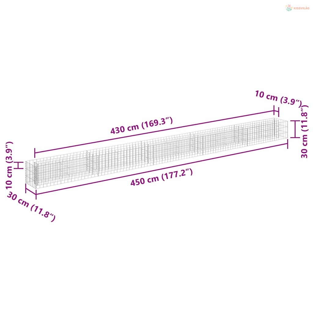 Horganyzott acél gabion magaságyás 450 x 30 x 30 cm
