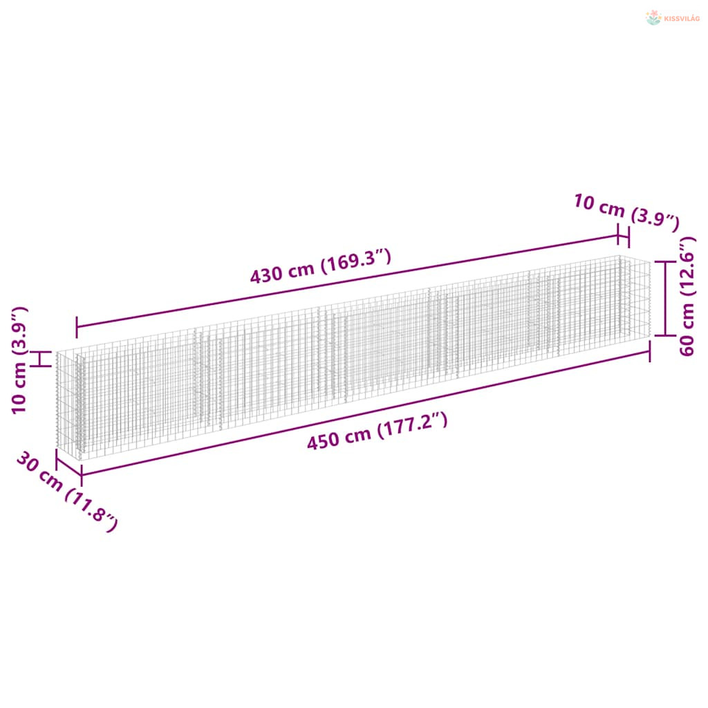 Horganyzott acél gabion magaságyás 450 x 30 x 60 cm
