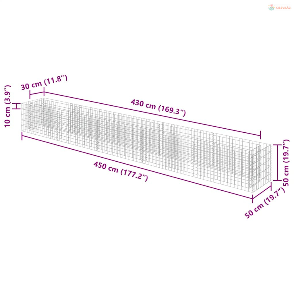 Horganyzott acél gabion magaságyás 450 x 50 x 50 cm