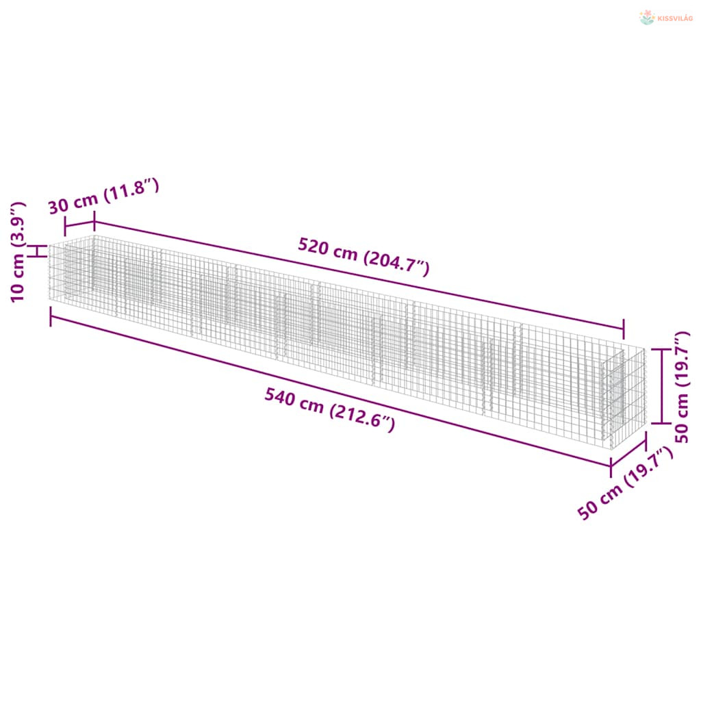 Horganyzott acél gabion magaságyás 540 x 50 x 50 cm