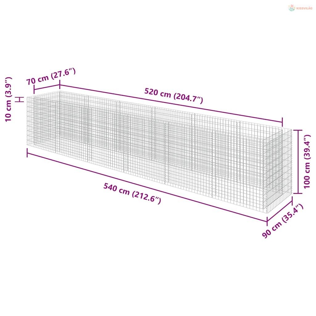 Horganyzott acél gabion magaságyás 540 x 90 x 100 cm