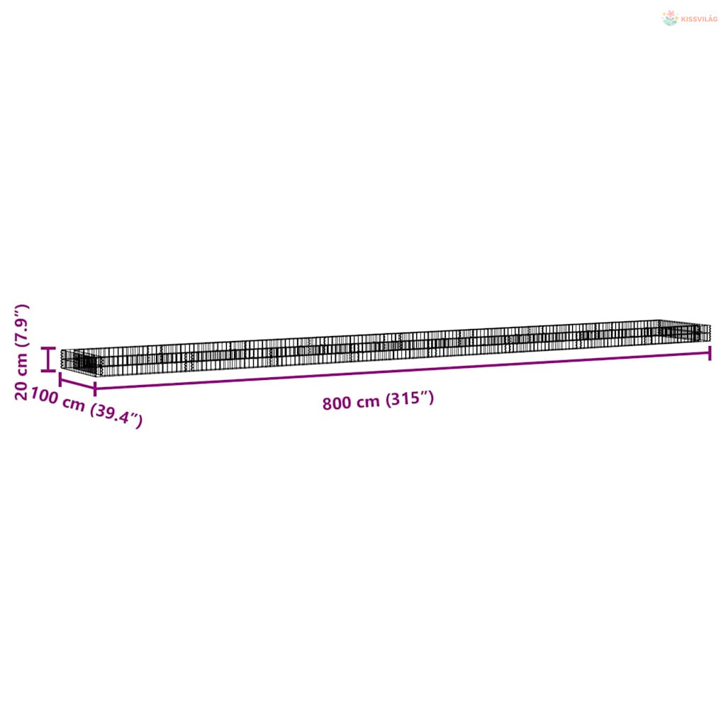 Horganyzott acél gabion magaságyás 800 x 100 x 20 cm