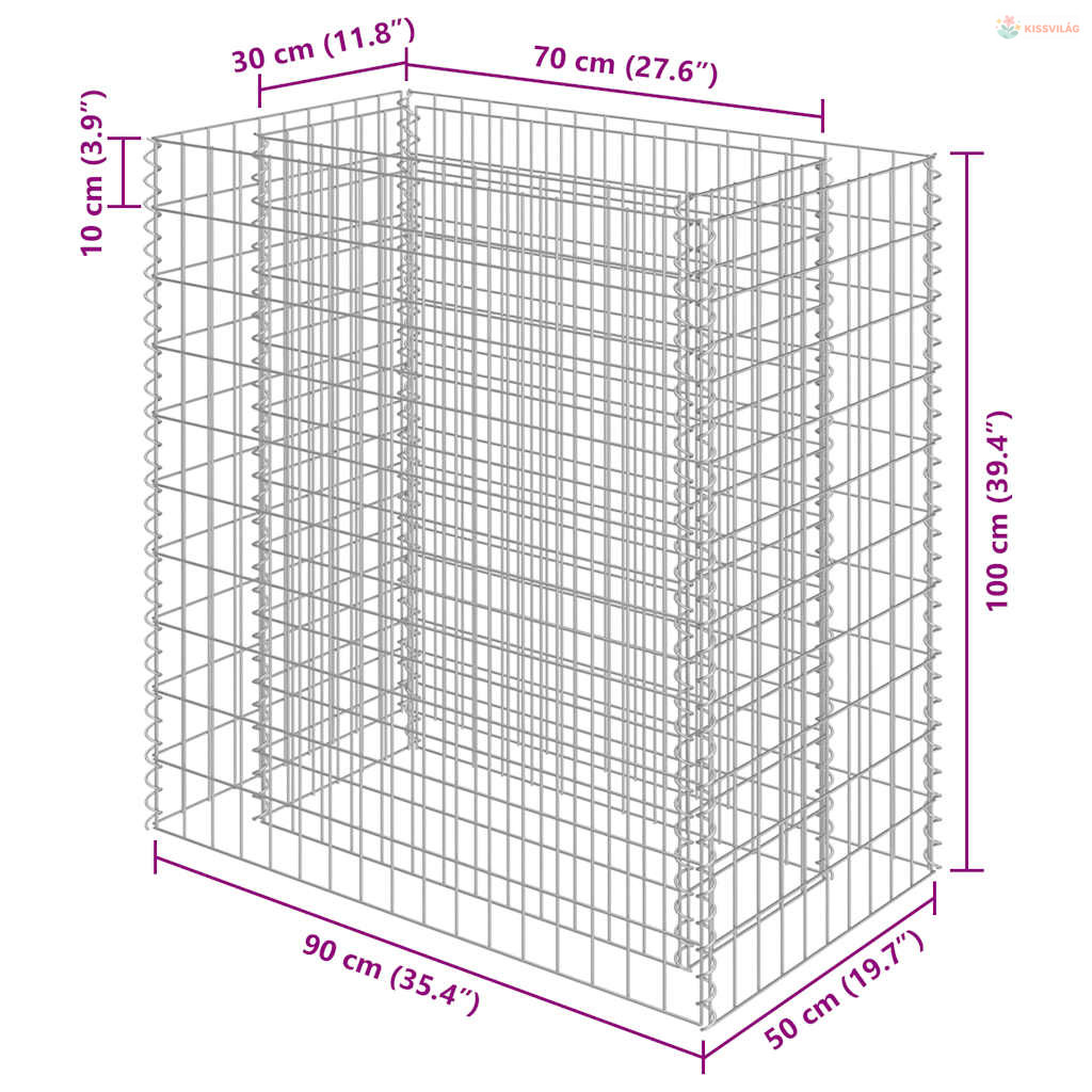 Horganyzott acél gabion magaságyás 90 x 50 x 100 cm