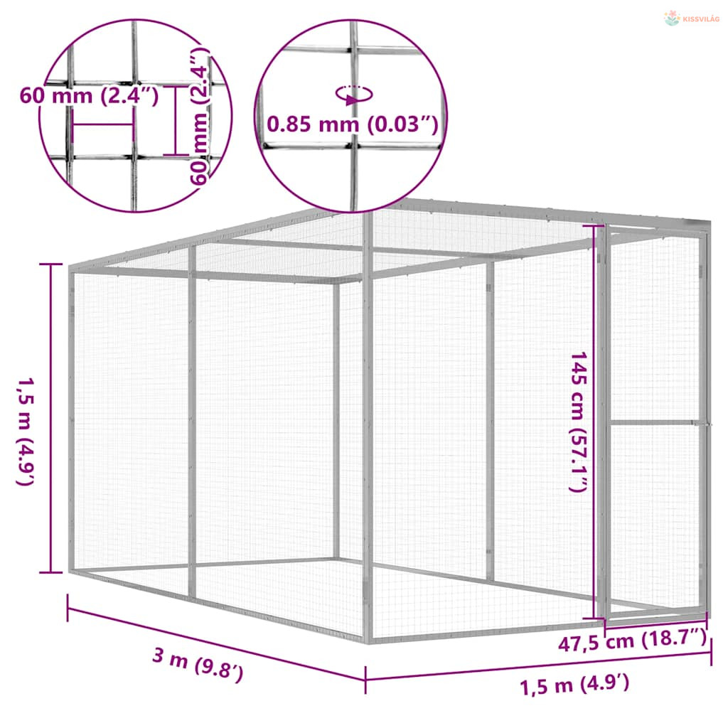 Horganyzott acél macskaketrec 3 x 1,5 x 1,5 m