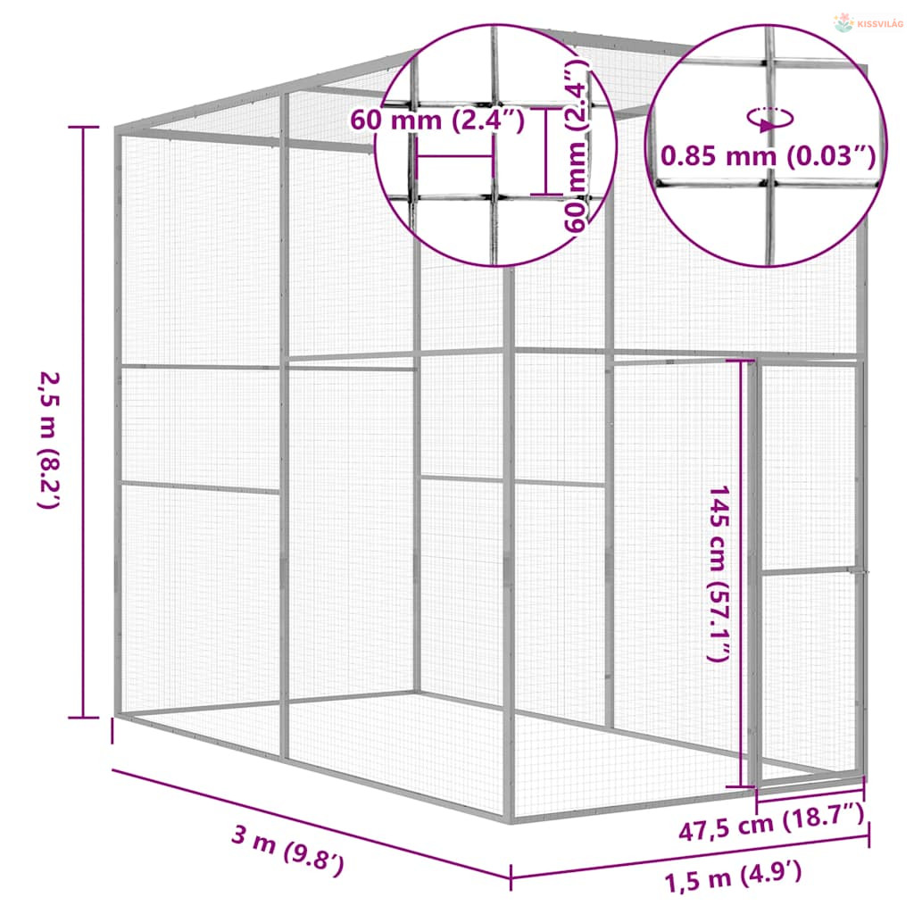 Horganyzott acél macskaketrec 3 x 1,5 x 2,5 m