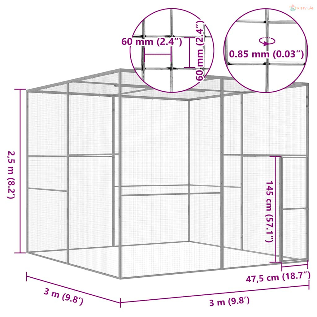 Horganyzott acél macskaketrec 3 x 3 x 2,5 m