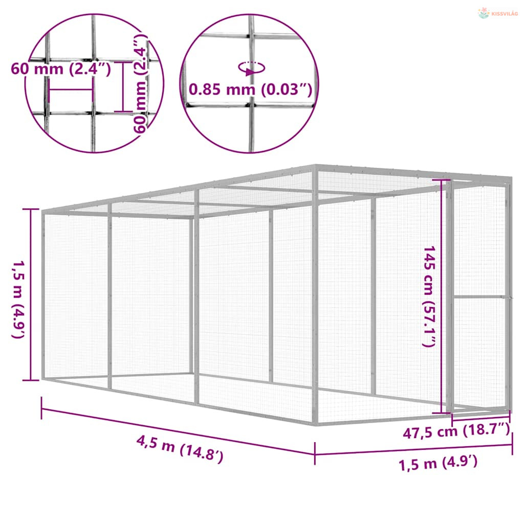 Horganyzott acél macskaketrec 4,5 x 1,5 x 1,5 m