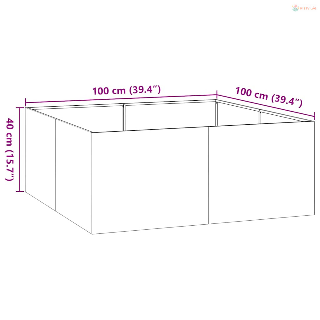 Horganyzott acél növénytartó 100x100x40 cm