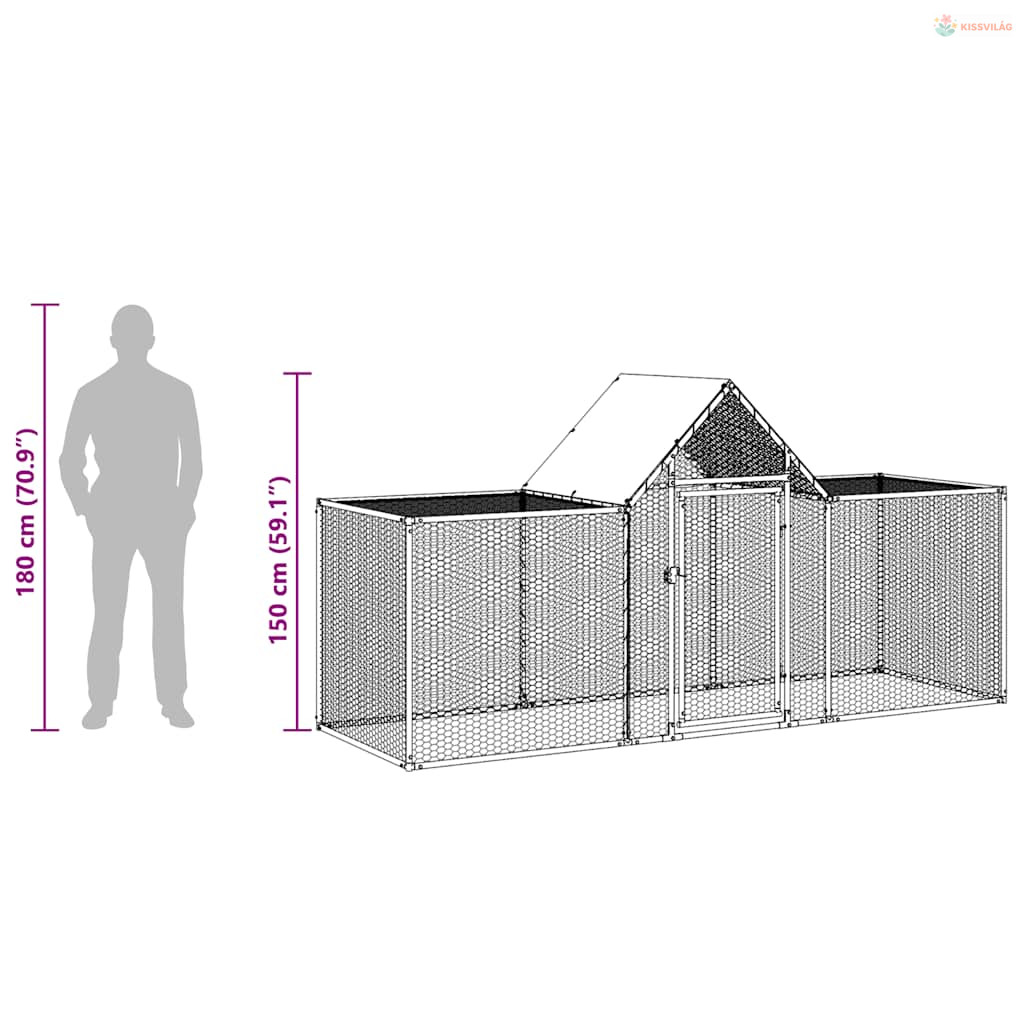 Horganyzott acél tyúkól 3 x 1 x 1,5 m