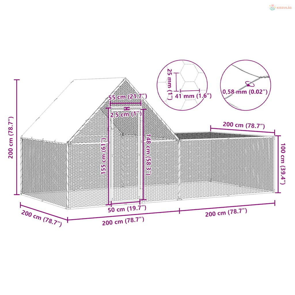 Horganyzott acél tyúkól 4 x 2 x 2 m