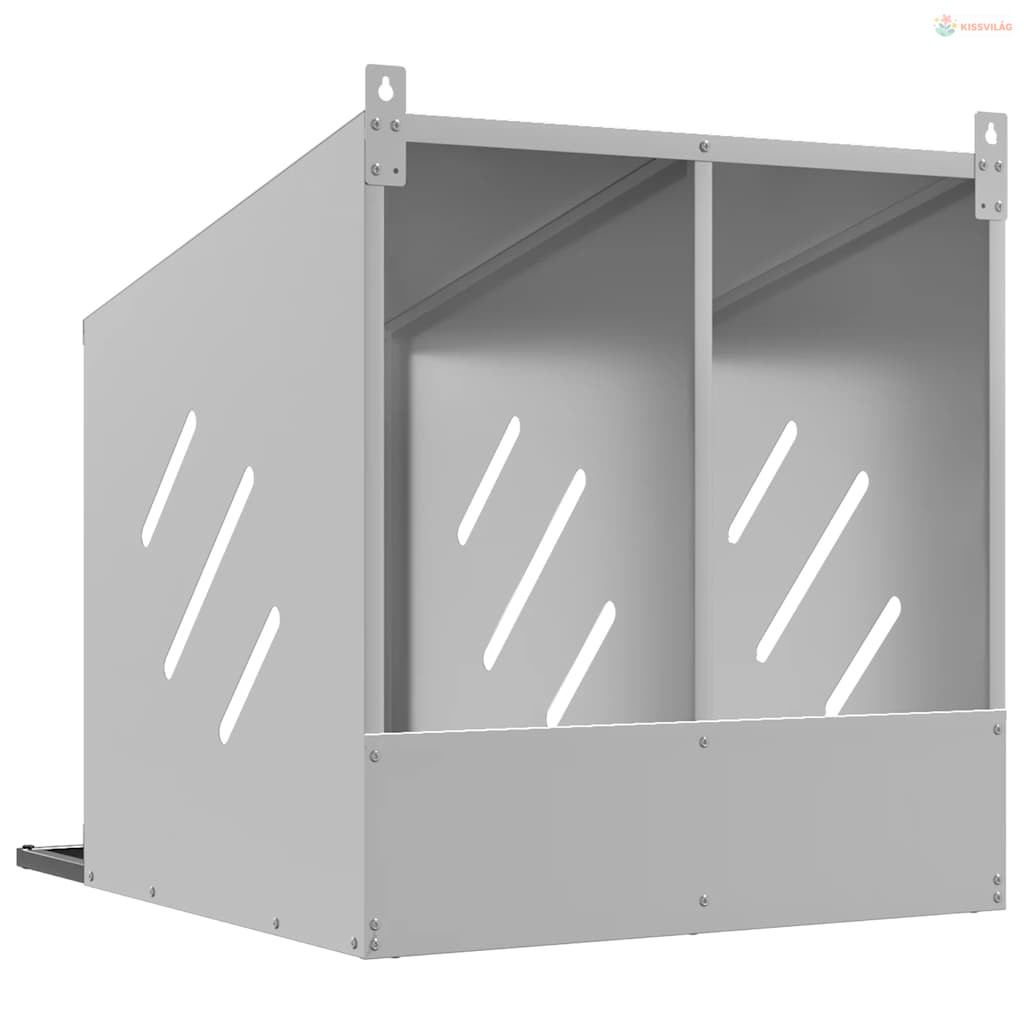 • Ferde tető: A ferde tető megakadályozza, hogy a tyúkok a fészekre üljenek, és megakadályozza a víz felgyülemlését esős napokon.
