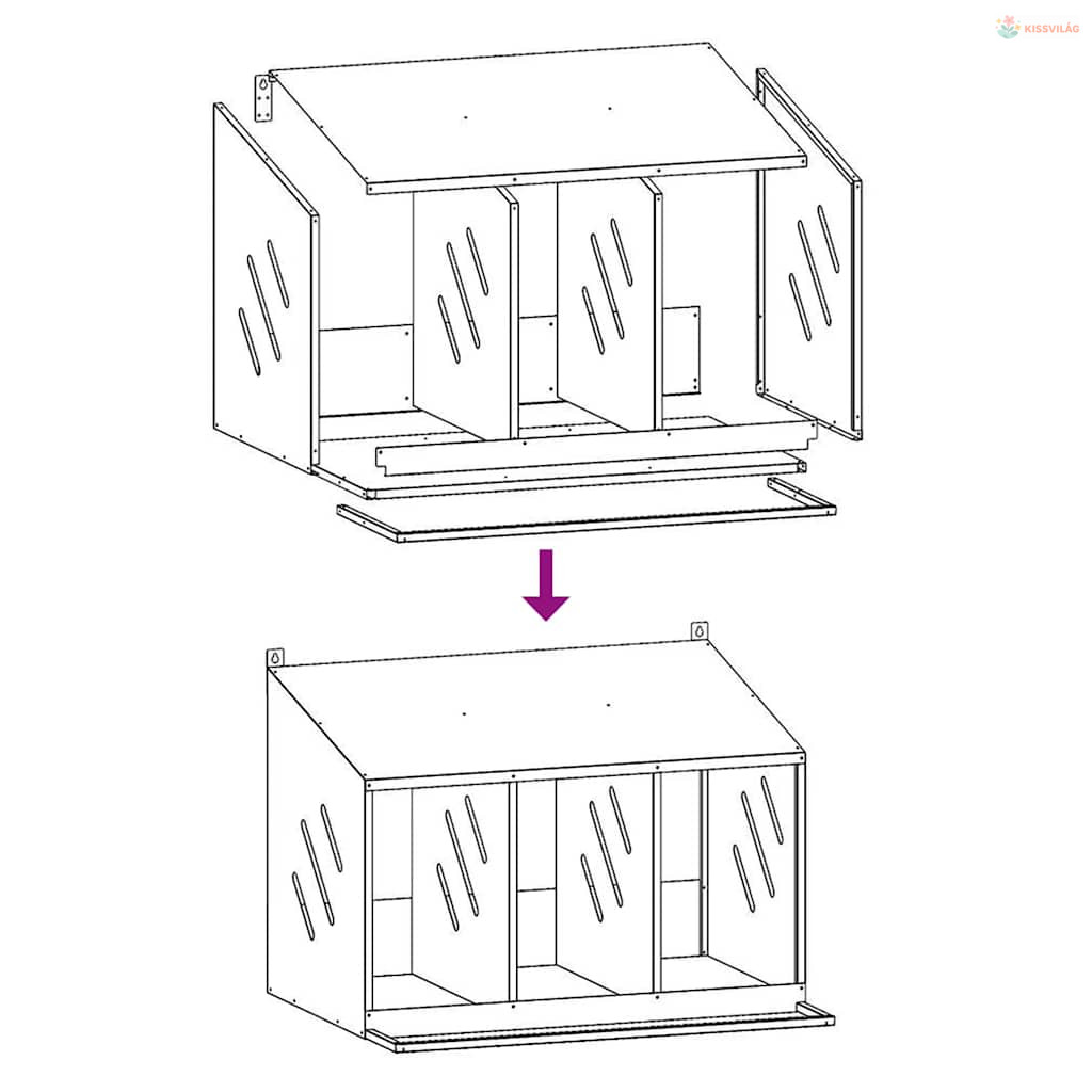 • Az egyes fészkelőhelyiségek méretei: 25 x 49 x 45/56,5 cm (Szé x Mé x Ma)