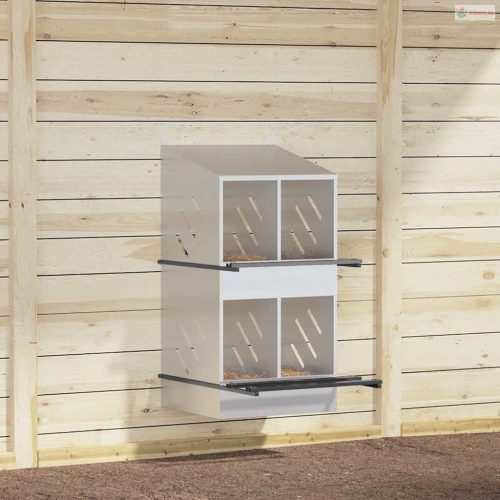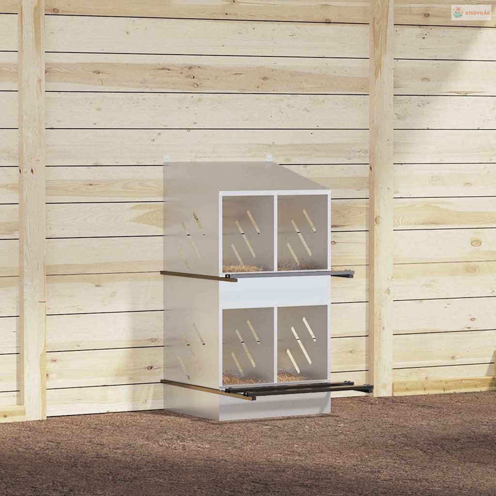 Ez a tyúkfészkelődoboz bőséges és rendezett helyet kínál a tyúkoknak a kényelmes tojásrakáshoz.