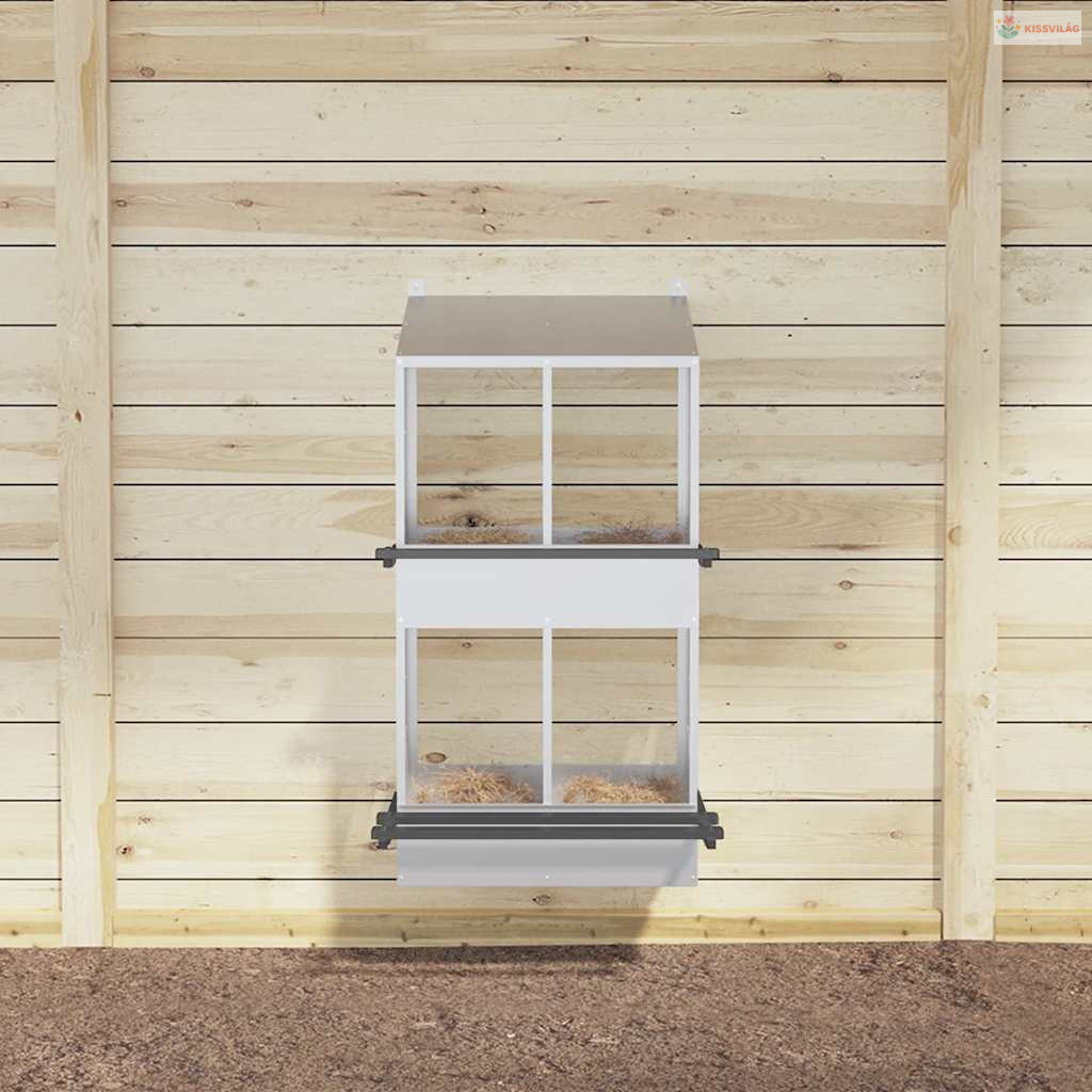 • Ferde tető: A ferde tető megakadályozza, hogy a tyúkok a fészekre üljenek, és megakadályozza a víz felgyülemlését esős napokon.