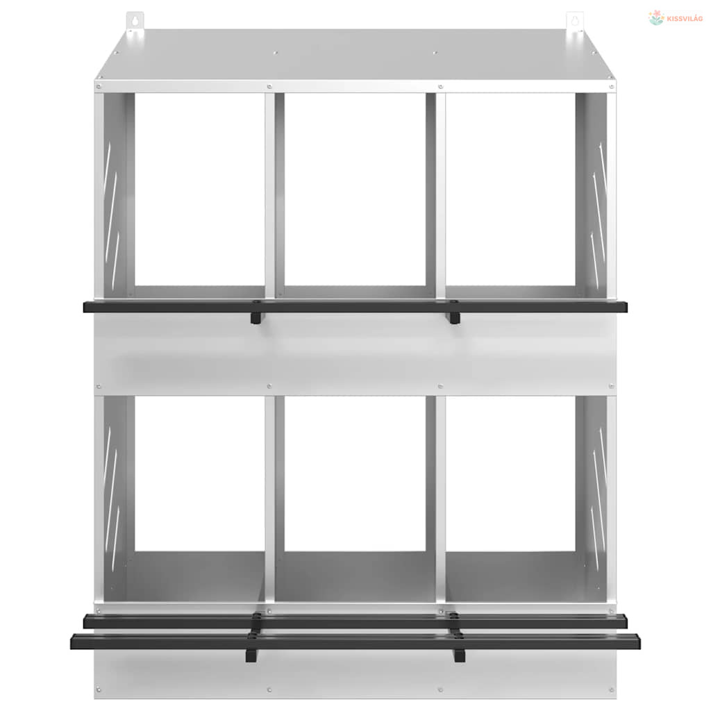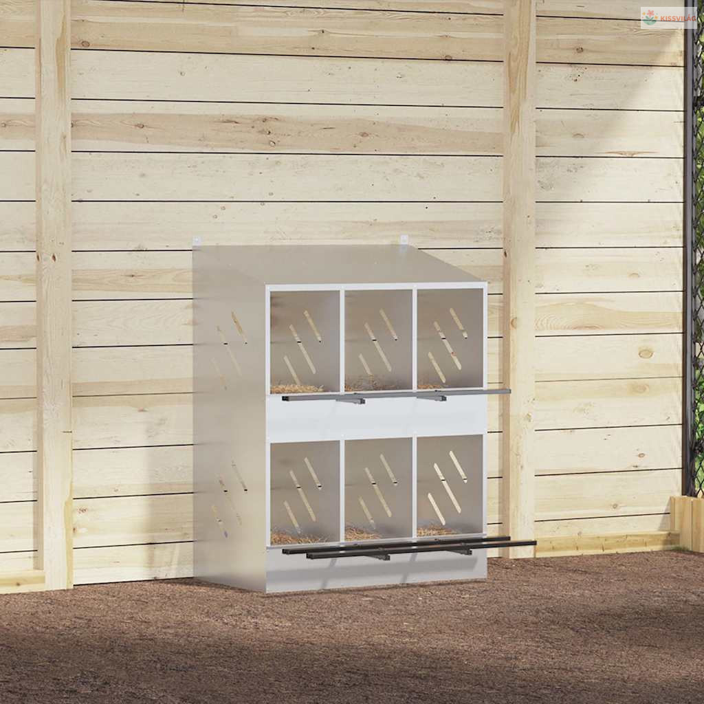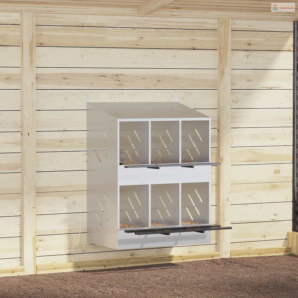Ez a tyúkfészkelődoboz bőséges és rendezett helyet kínál a tyúkoknak a kényelmes tojásrakáshoz.