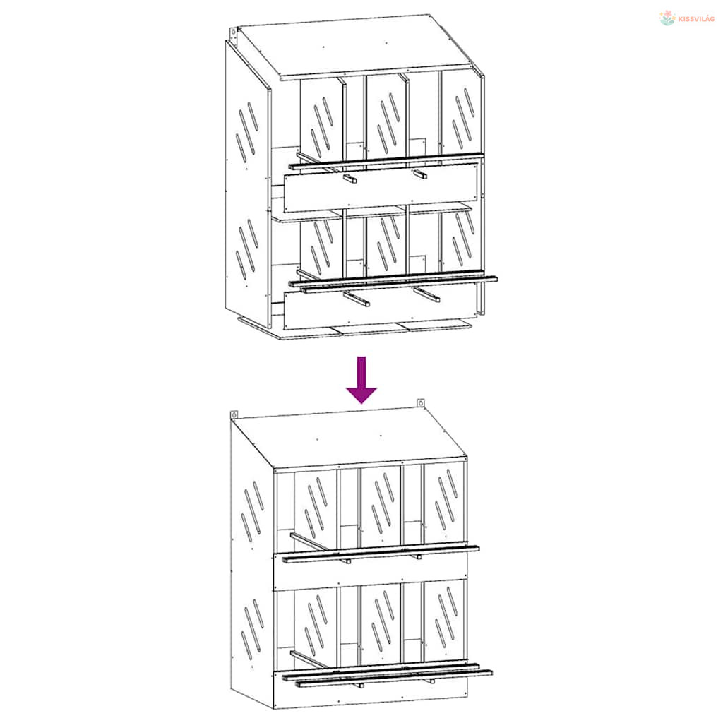 • Az egyes felső fészekrakó helyiségek méretei: 25 x 49 x 46,5/60 cm (Szé x Mé x Ma)