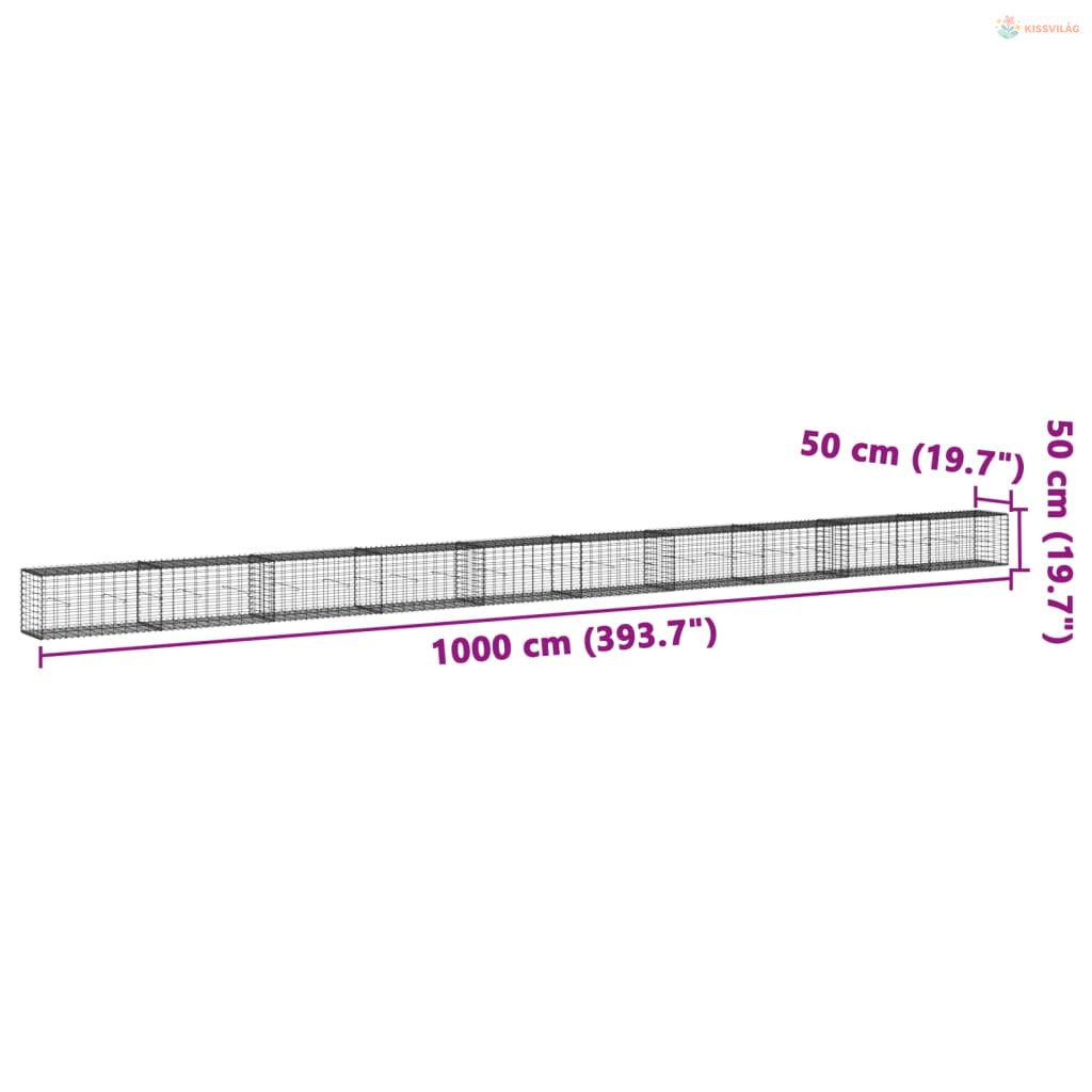 Horganyzott vas gabion kosár fedéllel 1000 x 50 x 50 cm