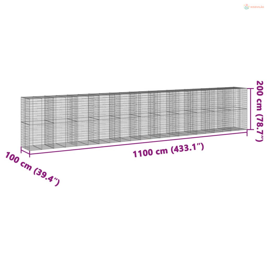 Horganyzott vas gabion kosár fedéllel 1100 x 100 x 200 cm