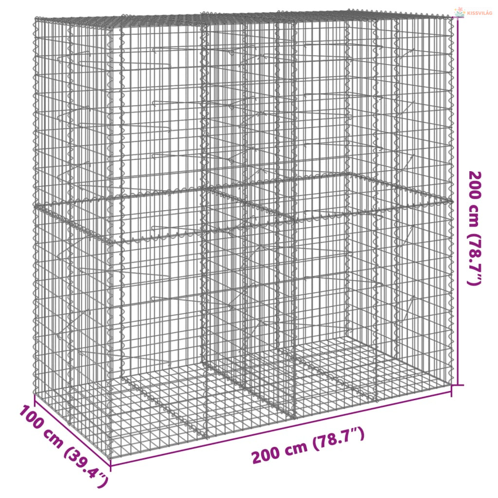 Horganyzott vas gabion kosár fedéllel 200 x 100 x 200 cm