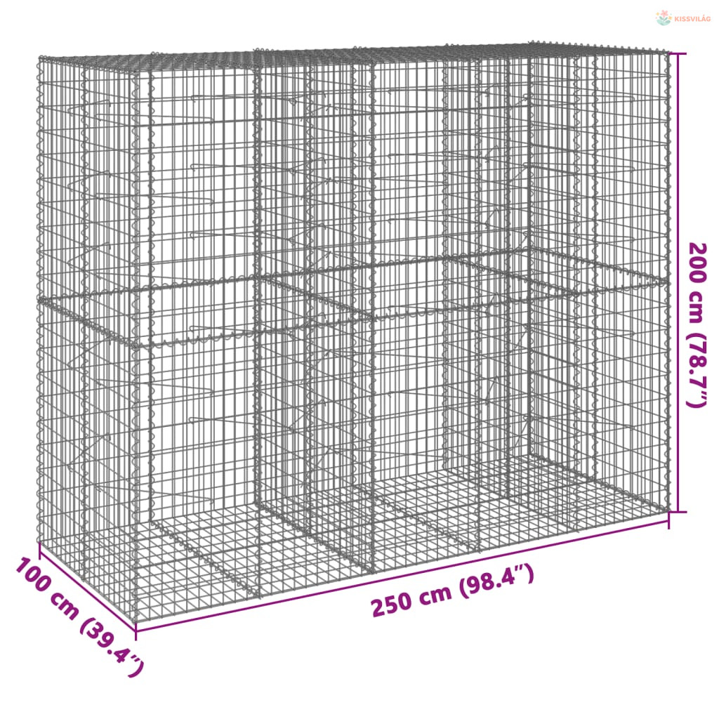 Horganyzott vas gabion kosár fedéllel 250 x 100 x 200 cm