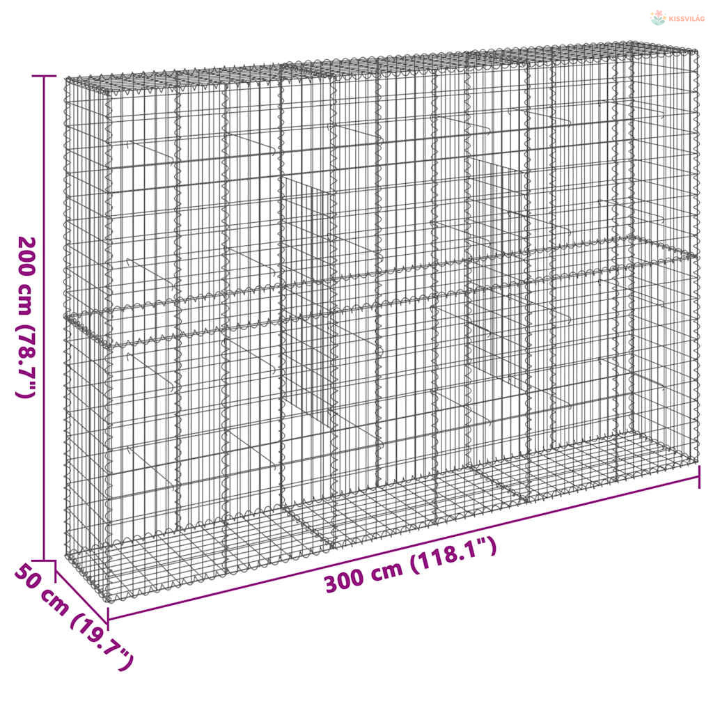 Horganyzott vas gabion kosár fedéllel 300 x 50 x 200 cm
