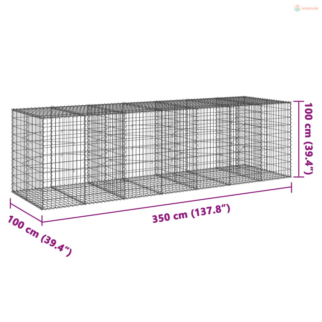Horganyzott vas gabion kosár fedéllel 350 x 100 x 100 cm
