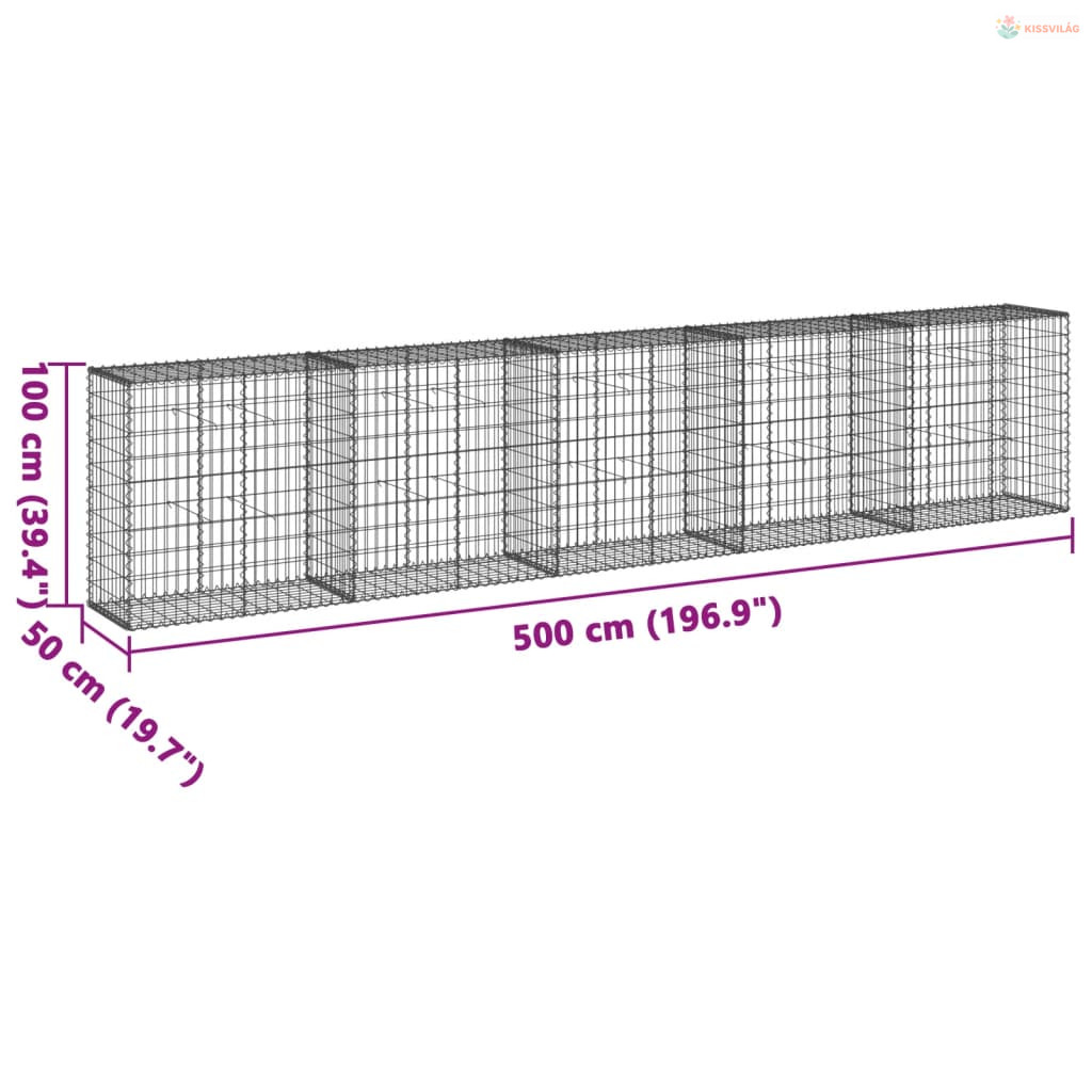 Horganyzott vas gabion kosár fedéllel 500 x 50 x 100 cm