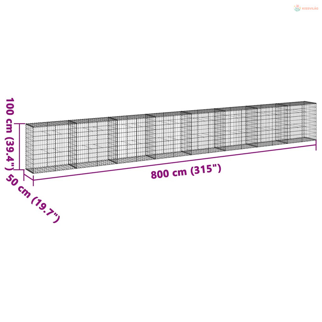 Horganyzott vas gabion kosár fedéllel 800 x 50 x 100 cm