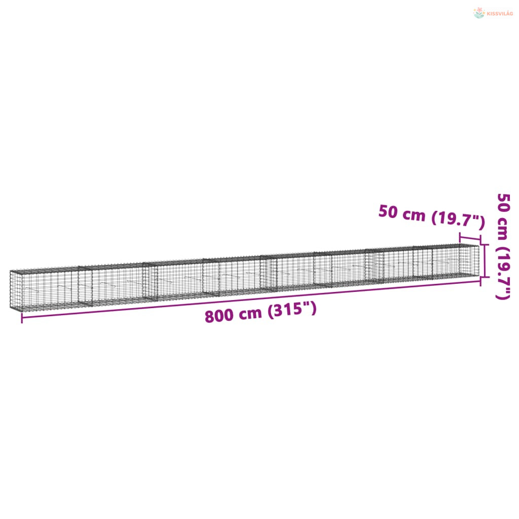 Horganyzott vas gabion kosár fedéllel 800 x 50 x 50 cm