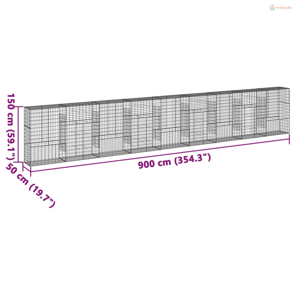 Horganyzott vas gabion kosár fedéllel 900 x 50 x 150 cm