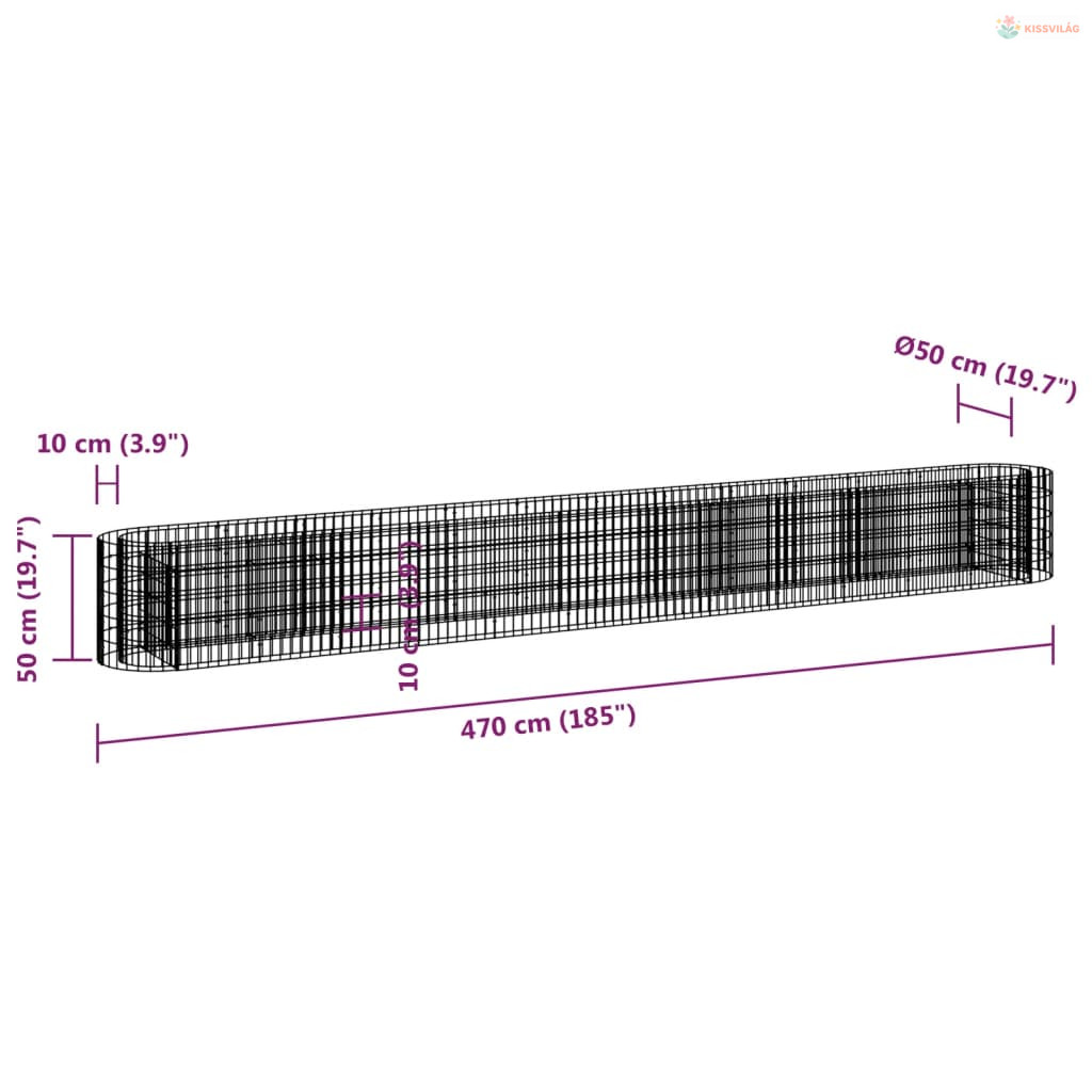 Horganyzott vas gabion magaságyás 470 x 50 x 50 cm