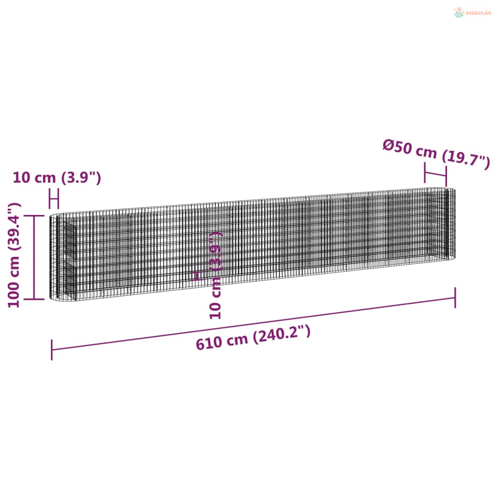 Horganyzott vas gabion magaságyás 610x50x100 cm