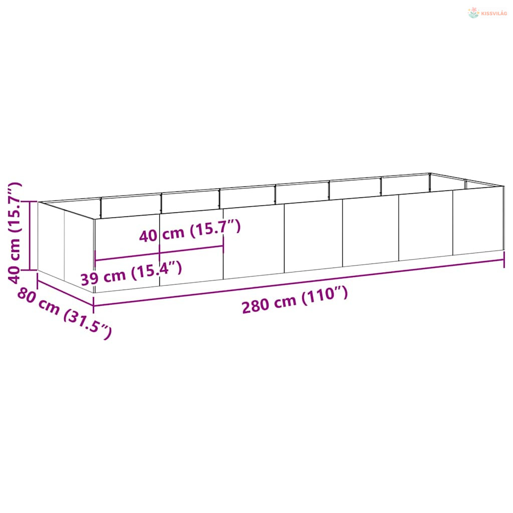 Időjárásálló acélból növénytartó rozsdás 280x80x40 cm